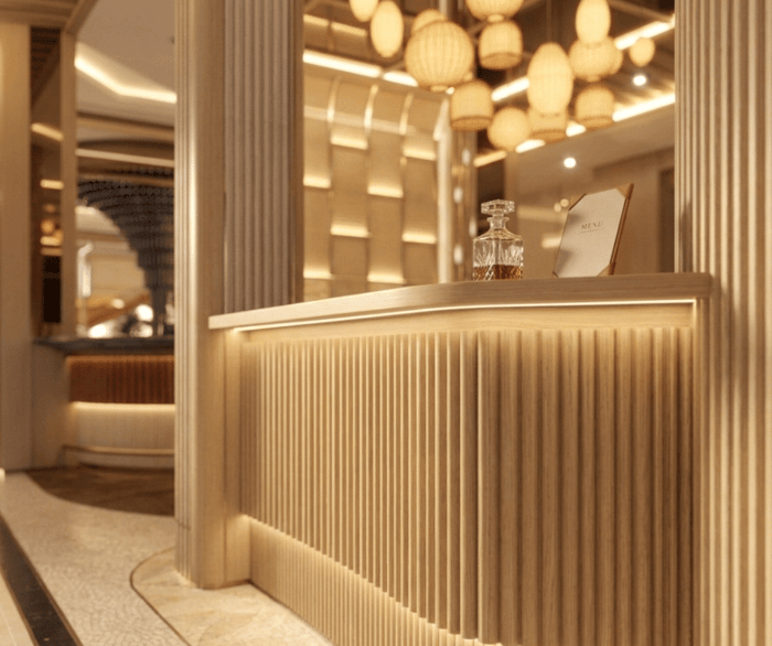 องค์ประกอบเหล่านี้ช่วยทำให้โถงโรงแรมดูหรูหรา อบอุ่น และน่าต้อนรับ