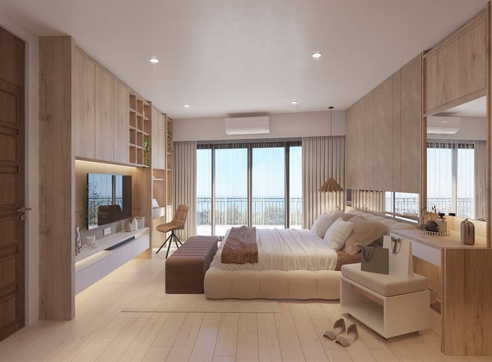 การออกแบบภายในควรเน้นวัสดุธรรมชาติ เช่น ไม้ หิน ผ้าลินิน เพื่อสร้างบรรยากาศที่อบอุ่นและกลมกลืนกับวิวทะเลหรือภูเขา เลือกโทนสีเอิร์ธโทนที่สะท้อนถึงธรรมชาติ เช่น น้ำตาล ทราย เทา และเขียว เพื่อให้ผู้เข้าพักรู้สึกผ่อนคลายและเป็นส่วนหนึ่งกับธรรมชาติของเกาะ