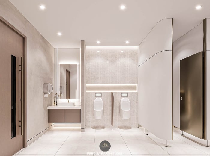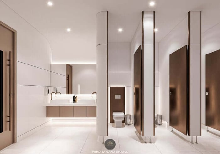 Restroom Design5. แผ่นผนังโลหะ (Metal Panels)