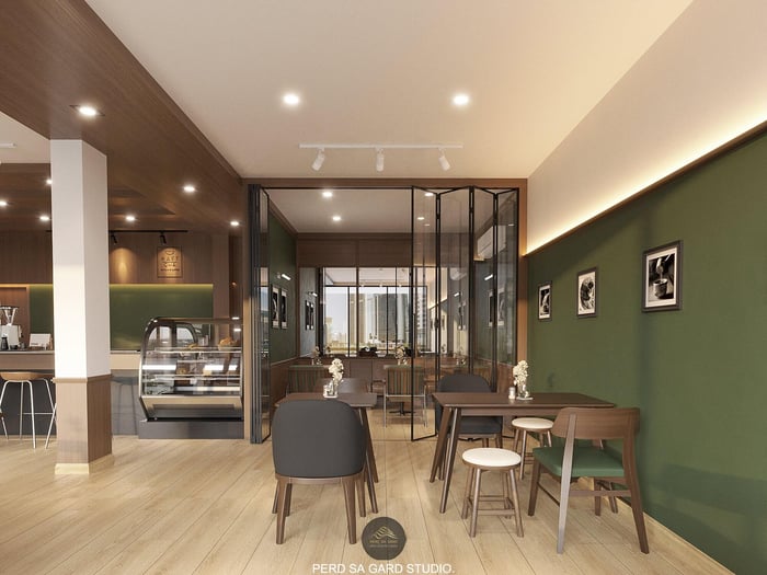KAFTcha Matcha & Cafe Design3. แผ่นผนังกระจก (Glass Panels)